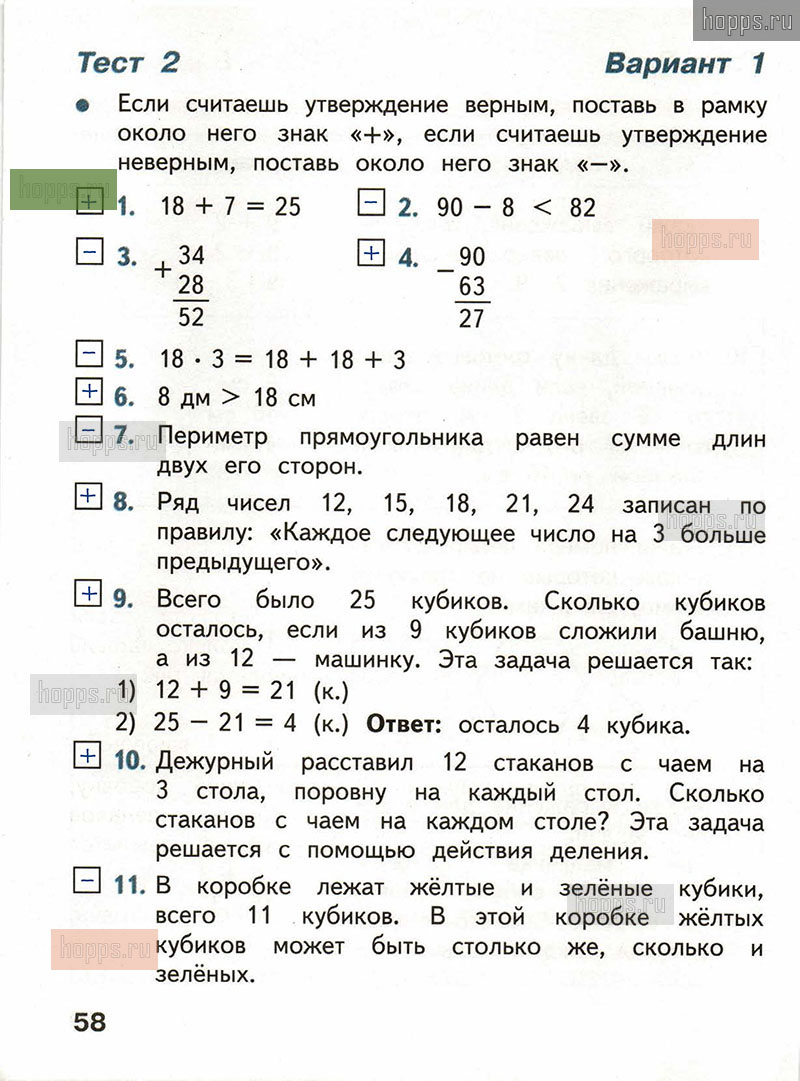 Подробные ответы к заданиям, расположенным на 58 странице тестов по математике автора С.И. Волкова для учащихся 2 класса.