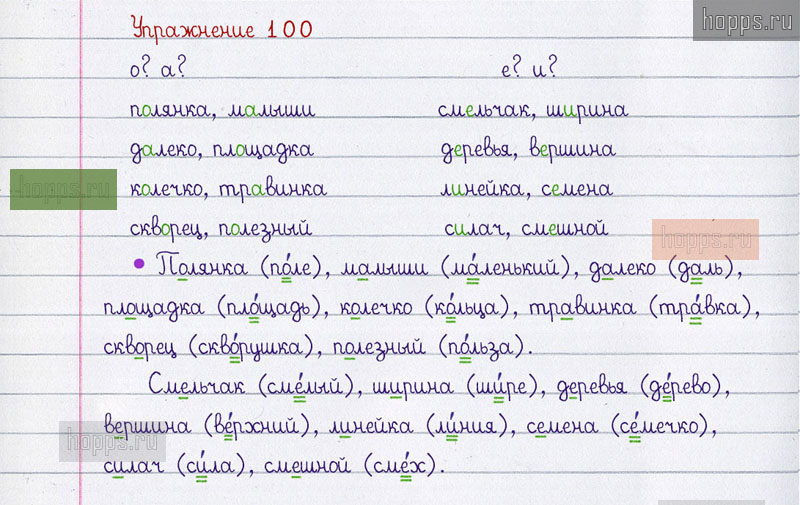 Готовые ответы к 100 упражнению 1 части рабочей тетради по русскому языку автора В.П. Канакина для учащихся 2 класса, 2019 г.