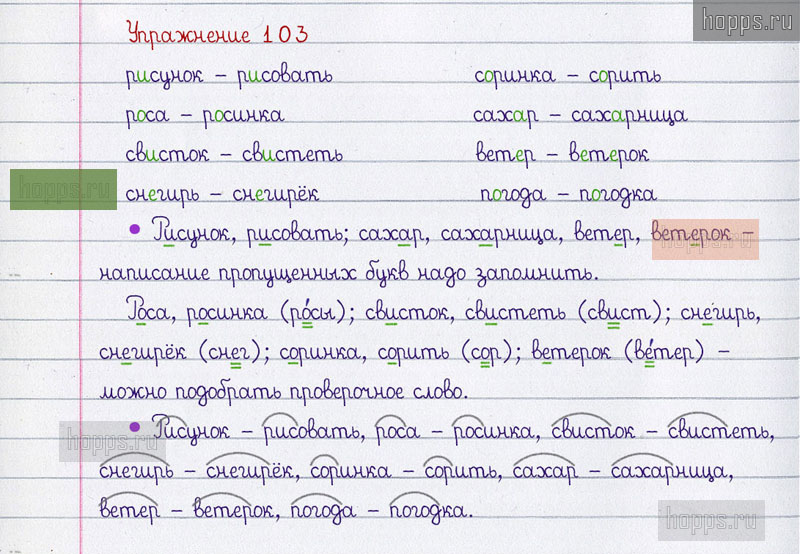 Готовые ответы к 103 упражнению 1 части рабочей тетради по русскому языку автора В.П. Канакина для учащихся 2 класса, 2019 г.