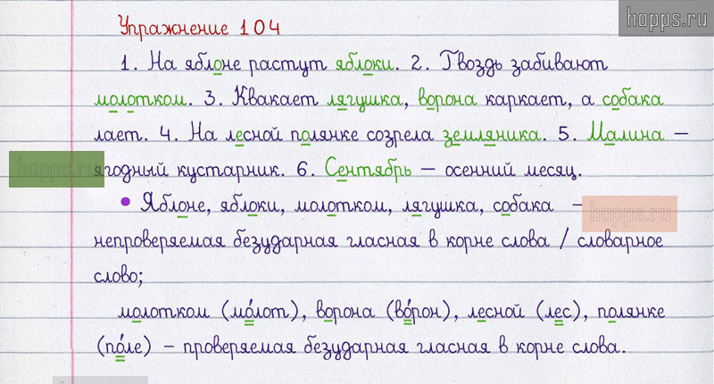 Готовые ответы к 104 упражнению 1 части рабочей тетради по русскому языку автора В.П. Канакина для учащихся 2 класса, 2019 г.