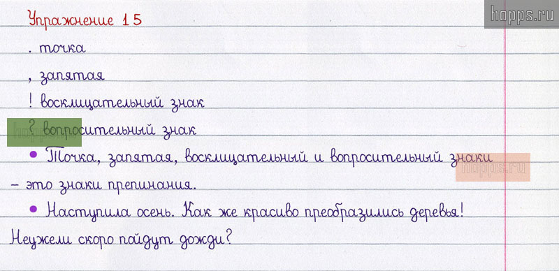 Готовые ответы к 15 упражнению 1 части рабочей тетради по русскому языку автора В.П. Канакина для учащихся 2 класса, 2019 г.