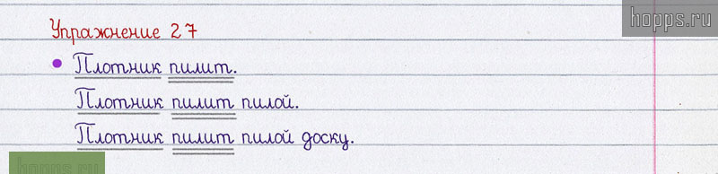 Готовые ответы к 27 упражнению 1 части рабочей тетради по русскому языку автора В.П. Канакина для учащихся 2 класса, 2019 г.