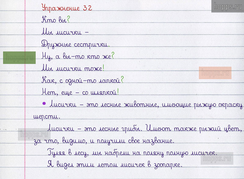 Готовые ответы к 32 упражнению 1 части рабочей тетради по русскому языку автора В.П. Канакина для учащихся 2 класса, 2019 г.