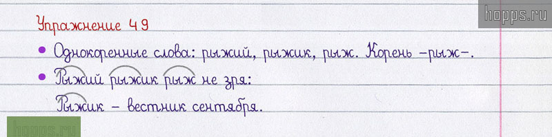 Готовые ответы к 49 упражнению 1 части рабочей тетради по русскому языку автора В.П. Канакина для учащихся 2 класса, 2019 г.
