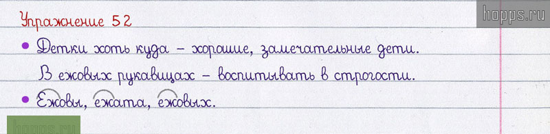 Готовые ответы к 52 упражнению 1 части рабочей тетради по русскому языку автора В.П. Канакина для учащихся 2 класса, 2019 г.
