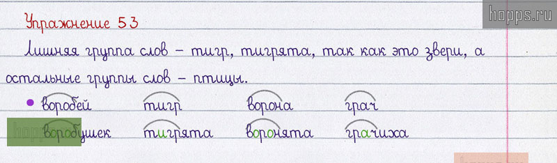 Готовые ответы к 53 упражнению 1 части рабочей тетради по русскому языку автора В.П. Канакина для учащихся 2 класса, 2019 г.