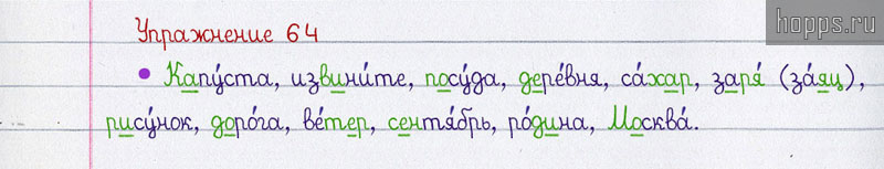 Готовые ответы к 64 упражнению 1 части рабочей тетради по русскому языку автора В.П. Канакина для учащихся 2 класса, 2019 г.