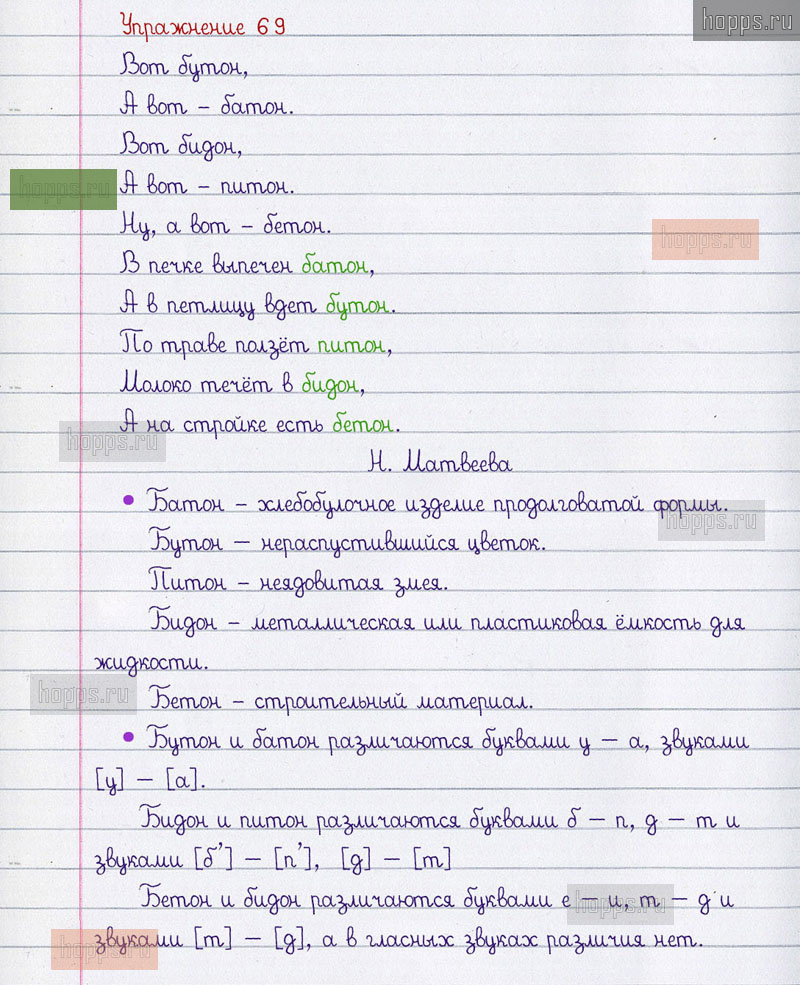 Готовые ответы к 69 упражнению 1 части рабочей тетради по русскому языку автора В.П. Канакина для учащихся 2 класса, 2019 г.