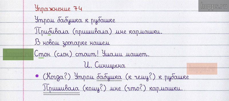 Готовые ответы к 74 упражнению 1 части рабочей тетради по русскому языку автора В.П. Канакина для учащихся 2 класса, 2019 г.