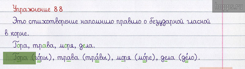 Готовые ответы к 88 упражнению 1 части рабочей тетради по русскому языку автора В.П. Канакина для учащихся 2 класса, 2019 г.