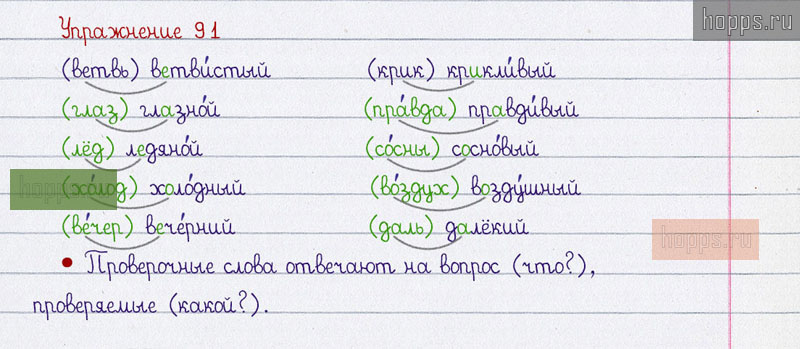 Готовые ответы к 91 упражнению 1 части рабочей тетради по русскому языку автора В.П. Канакина для учащихся 2 класса, 2019 г.