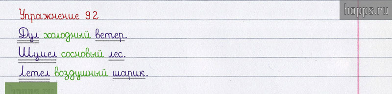 Готовые ответы к 92 упражнению 1 части рабочей тетради по русскому языку автора В.П. Канакина для учащихся 2 класса, 2019 г.