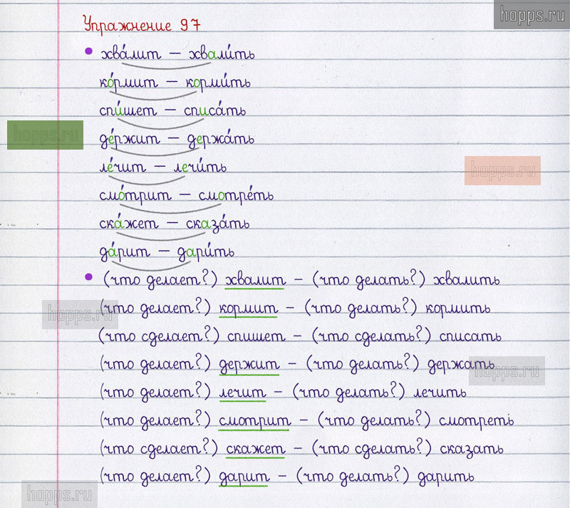 Готовые ответы к 97 упражнению 1 части рабочей тетради по русскому языку автора В.П. Канакина для учащихся 2 класса, 2019 г.