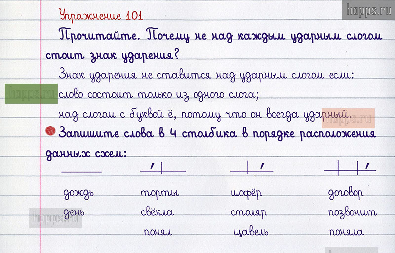 Подробные ответы к 101 упражнению 1 части учебника по русскому языку авторов В.П. Канакина, В.Г. Горецкий для учащихся 2 класса. Слог. Ударение. Перенос слова.