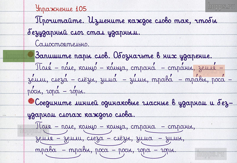 Подробные ответы к 105 упражнению 1 части учебника по русскому языку авторов В.П. Канакина, В.Г. Горецкий для учащихся 2 класса. Слог. Ударение. Перенос слова.
