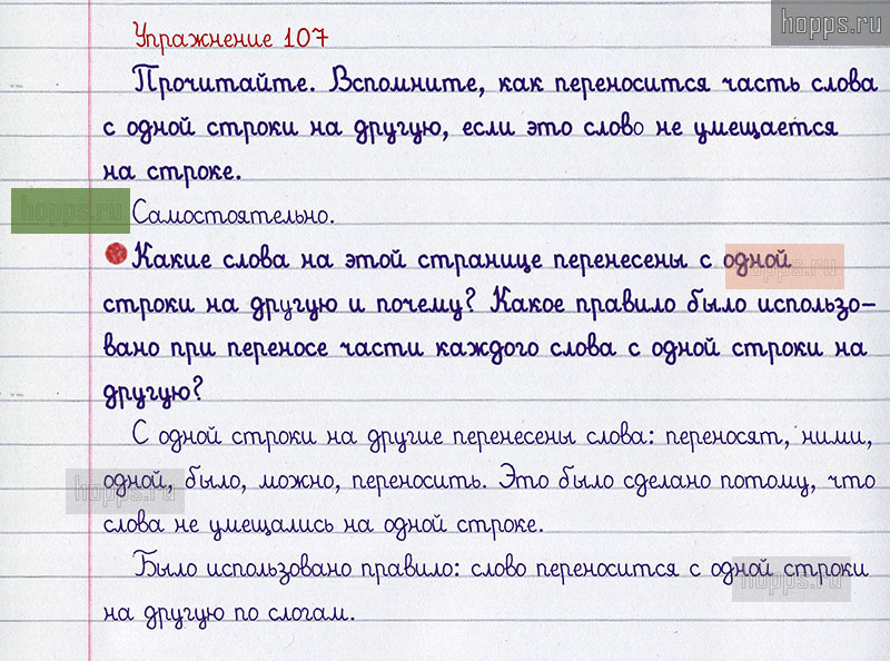 Подробные ответы к 107 упражнению 1 части учебника по русскому языку авторов В.П. Канакина, В.Г. Горецкий для учащихся 2 класса. Слог. Ударение. Перенос слова.