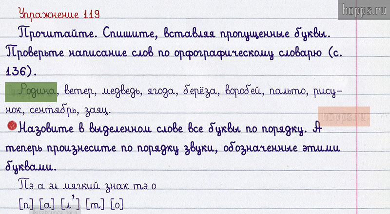 Подробные ответы к 119 упражнению 1 части учебника по русскому языку авторов В.П. Канакина, В.Г. Горецкий для учащихся 2 класса. Звуки и буквы.