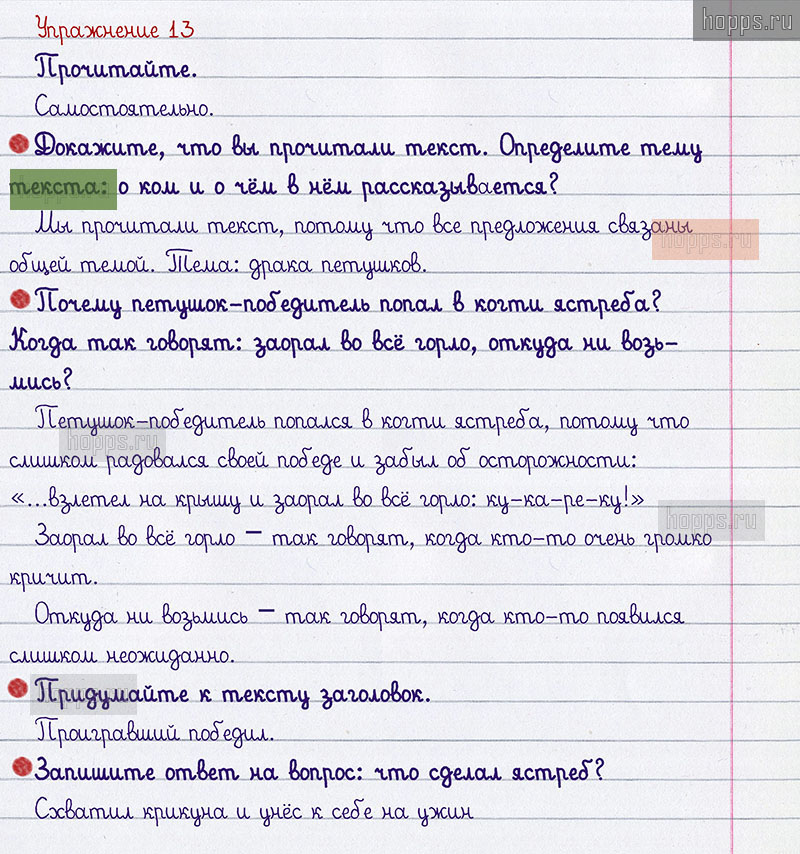 Подробные ответы к 13 упражнению 1 части учебника по русскому языку авторов В.П. Канакина, В.Г. Горецкий для учащихся 2 класса. Текст.
