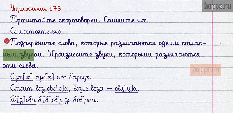 Подробные ответы к 179 упражнению 1 части учебника по русскому языку авторов В.П. Канакина, В.Г. Горецкий для учащихся 2 класса. Согласные звуки.