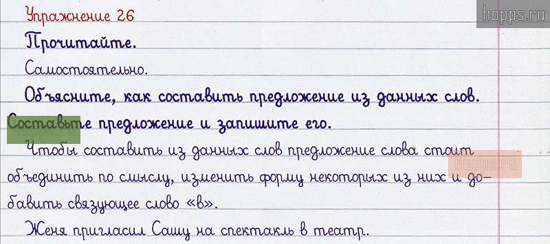 Подробные ответы к 26 упражнению 1 части учебника по русскому языку авторов В.П. Канакина, В.Г. Горецкий для учащихся 2 класса. Предложение.