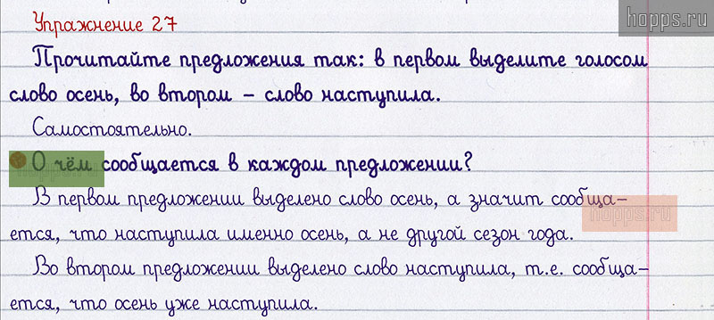 Подробные ответы к 27 упражнению 1 части учебника по русскому языку авторов В.П. Канакина, В.Г. Горецкий для учащихся 2 класса. Предложение.