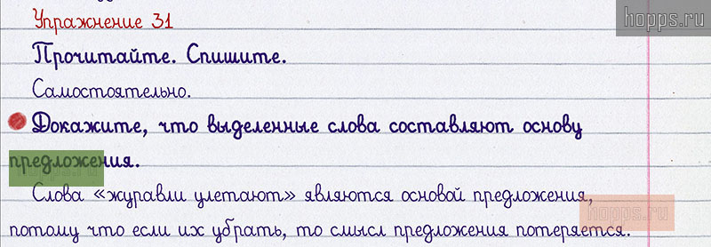 Подробные ответы к 31 упражнению 1 части учебника по русскому языку авторов В.П. Канакина, В.Г. Горецкий для учащихся 2 класса. Члены предложения.