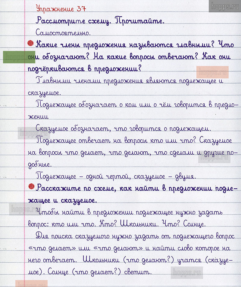 Подробные ответы к 37 упражнению 1 части учебника по русскому языку авторов В.П. Канакина, В.Г. Горецкий для учащихся 2 класса. Члены предложения.