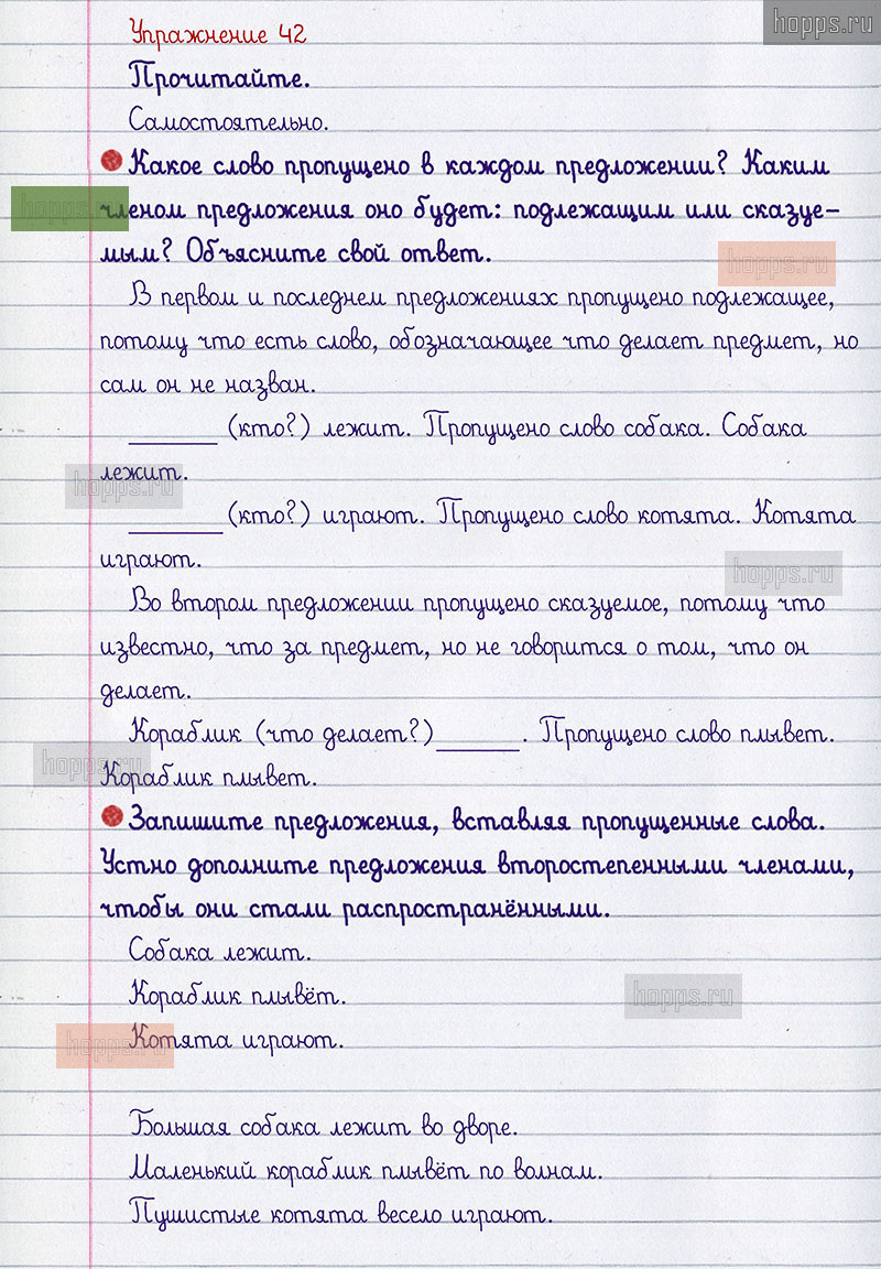 Подробные ответы к 42 упражнению 1 части учебника по русскому языку авторов В.П. Канакина, В.Г. Горецкий для учащихся 2 класса. Члены предложения.