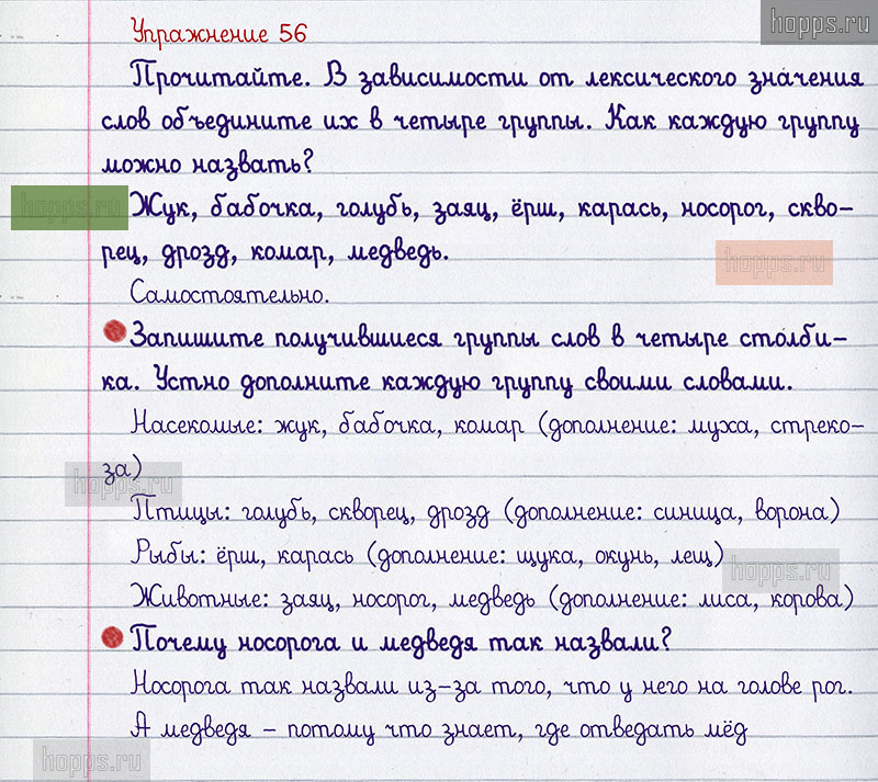 Подробные ответы к 56 упражнению 1 части учебника по русскому языку авторов В.П. Канакина, В.Г. Горецкий для учащихся 2 класса. Слово и его значение.