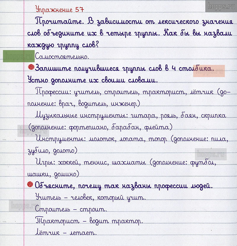 Подробные ответы к 57 упражнению 1 части учебника по русскому языку авторов В.П. Канакина, В.Г. Горецкий для учащихся 2 класса. Слово и его значение.