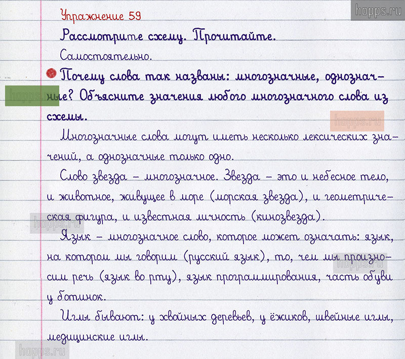 Подробные ответы к 59 упражнению 1 части учебника по русскому языку авторов В.П. Канакина, В.Г. Горецкий для учащихся 2 класса. Слово и его значение.