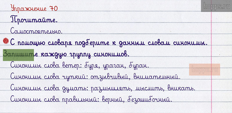 Подробные ответы к 70 упражнению 1 части учебника по русскому языку авторов В.П. Канакина, В.Г. Горецкий для учащихся 2 класса. Синонимы и антонимы.