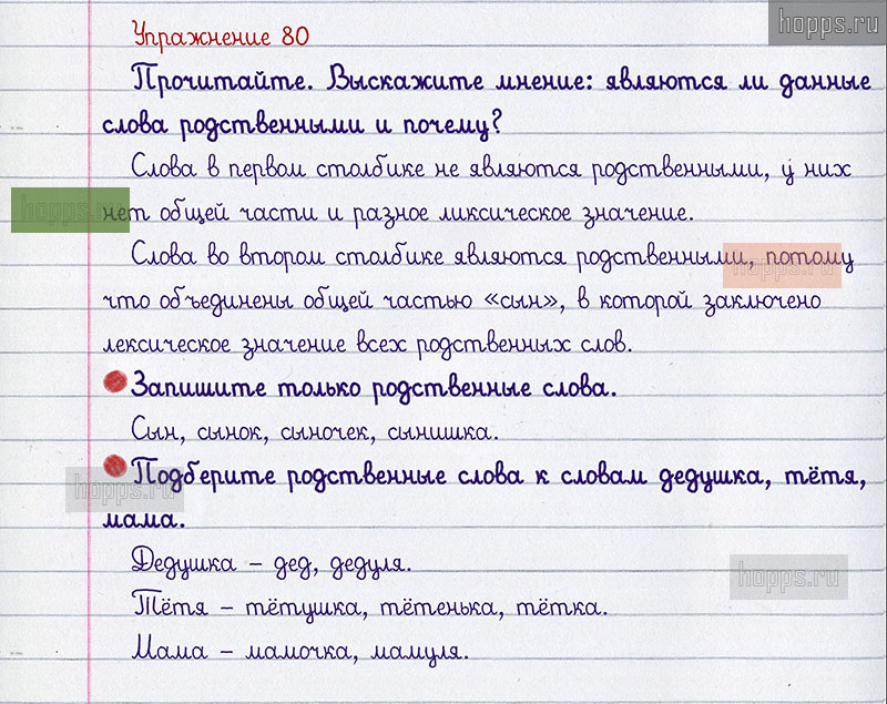 Подробные ответы к 80 упражнению 1 части учебника по русскому языку авторов В.П. Канакина, В.Г. Горецкий для учащихся 2 класса. Однокоренные слова.