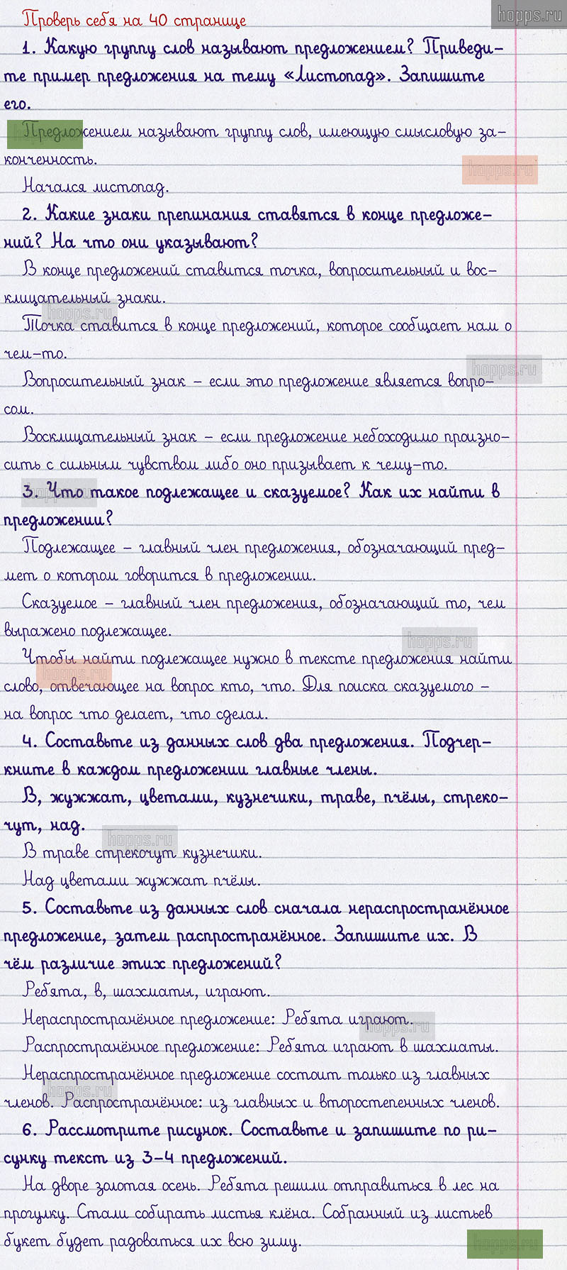 Подробные ответы к заданиям проверь себя на 40 странице 1 части учебника по русскому языку авторов В.П. Канакина, В.Г. Горецкий для учащихся 2 класса.