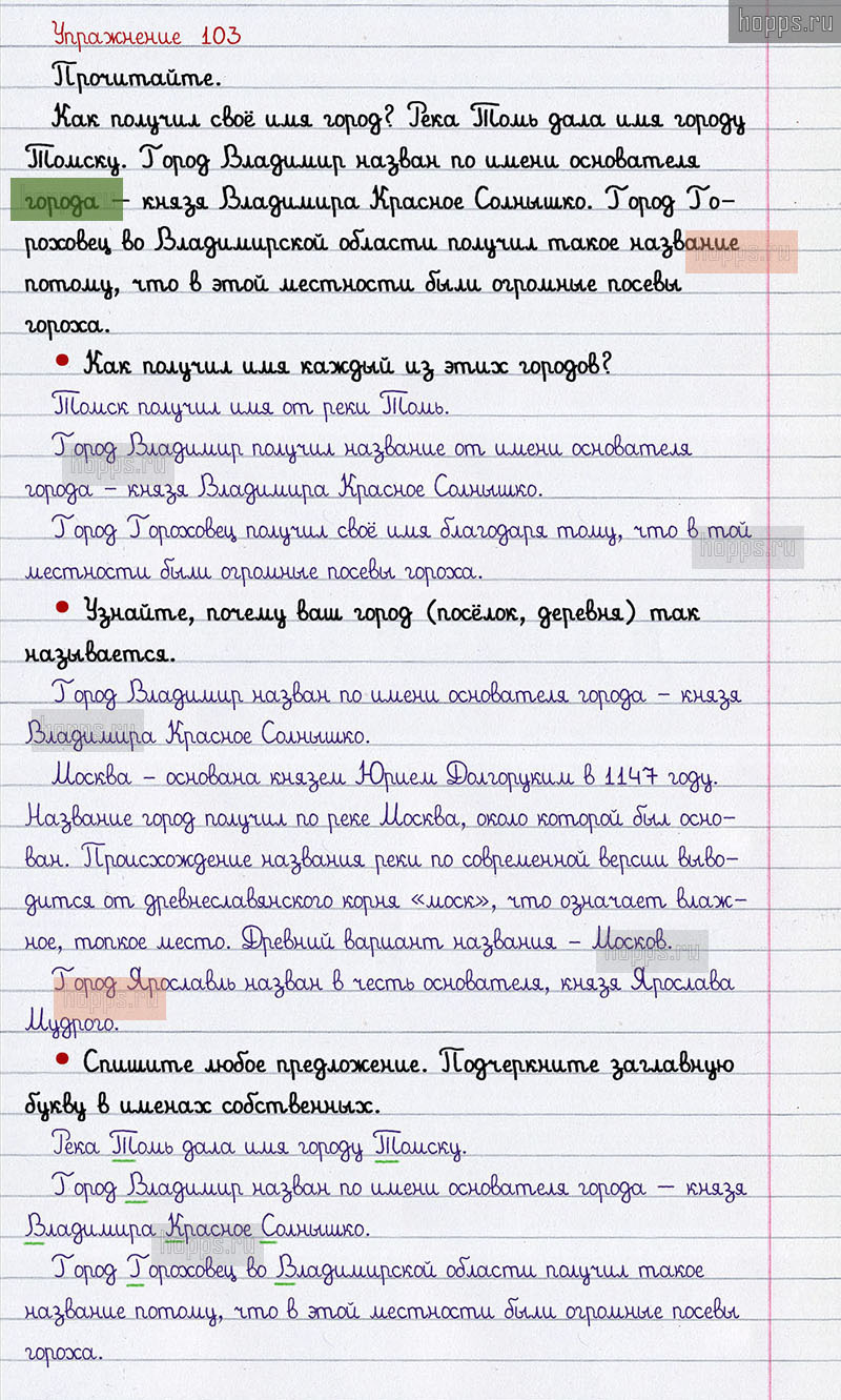 Подробные ответы к 103 упражнению 2 части учебника по русскому языку авторов В.П. Канакина, В.Г. Горецкий для учащихся 2 класса. Имя существительное.