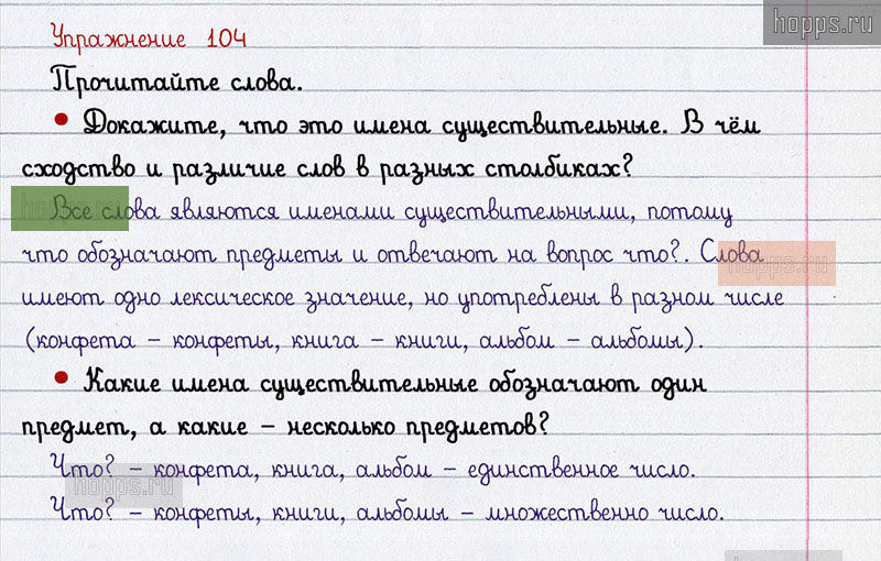 Подробные ответы к 104 упражнению 2 части учебника по русскому языку авторов В.П. Канакина, В.Г. Горецкий для учащихся 2 класса. Имя существительное.