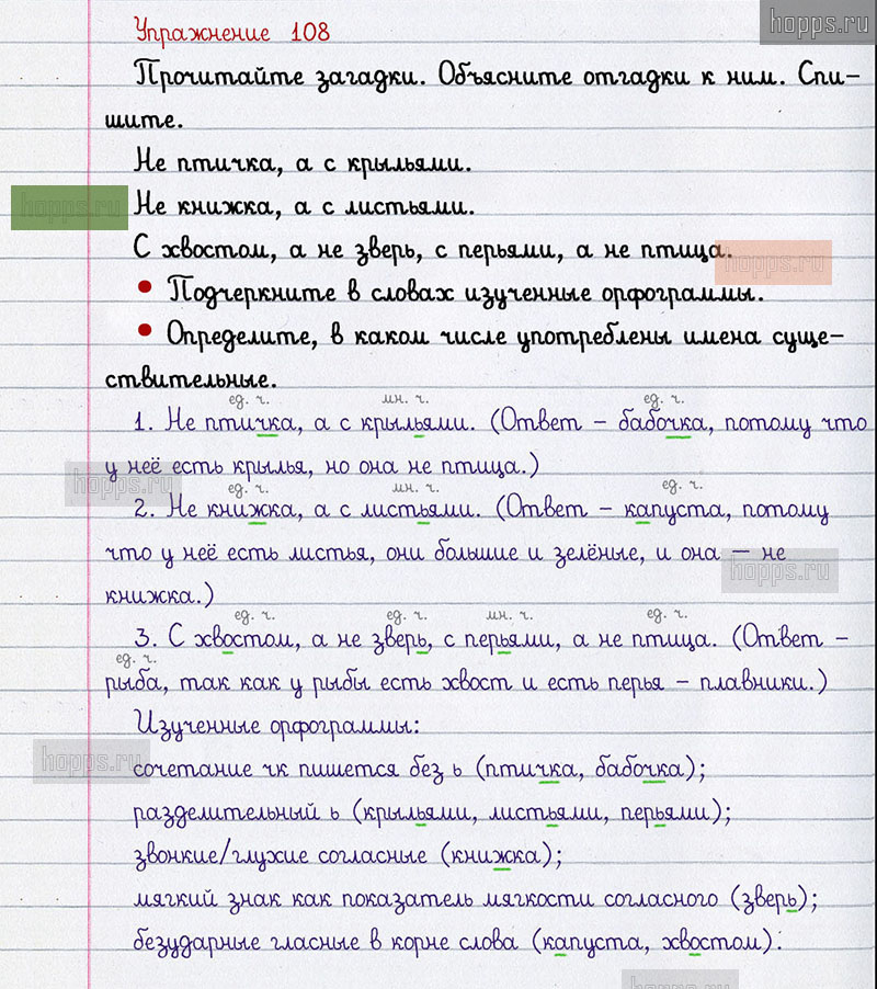 Подробные ответы к 108 упражнению 2 части учебника по русскому языку авторов В.П. Канакина, В.Г. Горецкий для учащихся 2 класса. Имя существительное.