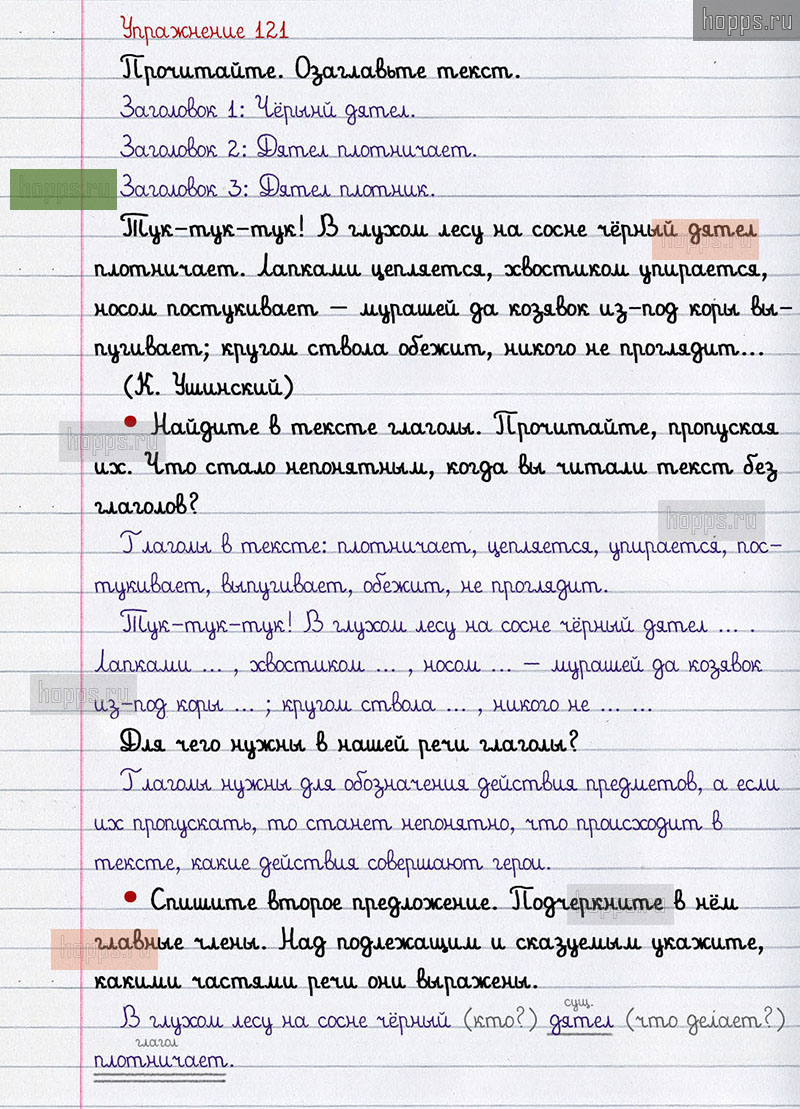 Подробные ответы к 121 упражнению 2 части учебника по русскому языку авторов В.П. Канакина, В.Г. Горецкий для учащихся 2 класса. Глагол.