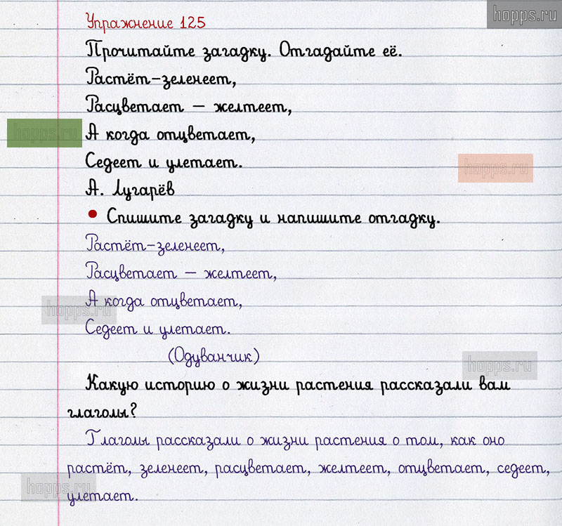Подробные ответы к 125 упражнению 2 части учебника по русскому языку авторов В.П. Канакина, В.Г. Горецкий для учащихся 2 класса. Глагол.