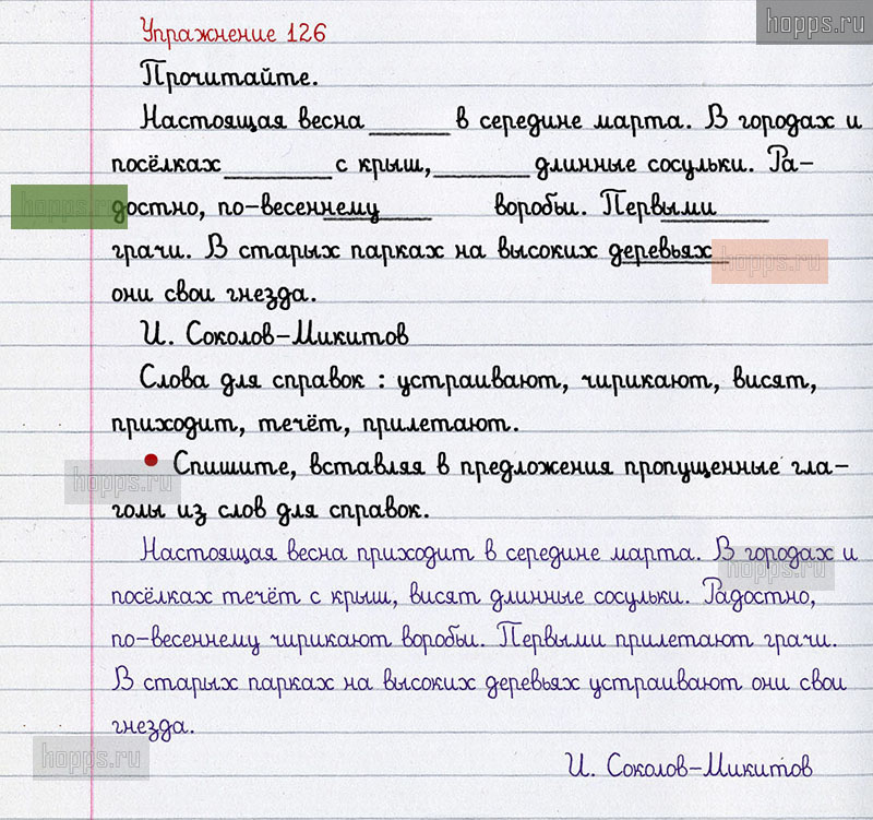 Подробные ответы к 126 упражнению 2 части учебника по русскому языку авторов В.П. Канакина, В.Г. Горецкий для учащихся 2 класса. Глагол.