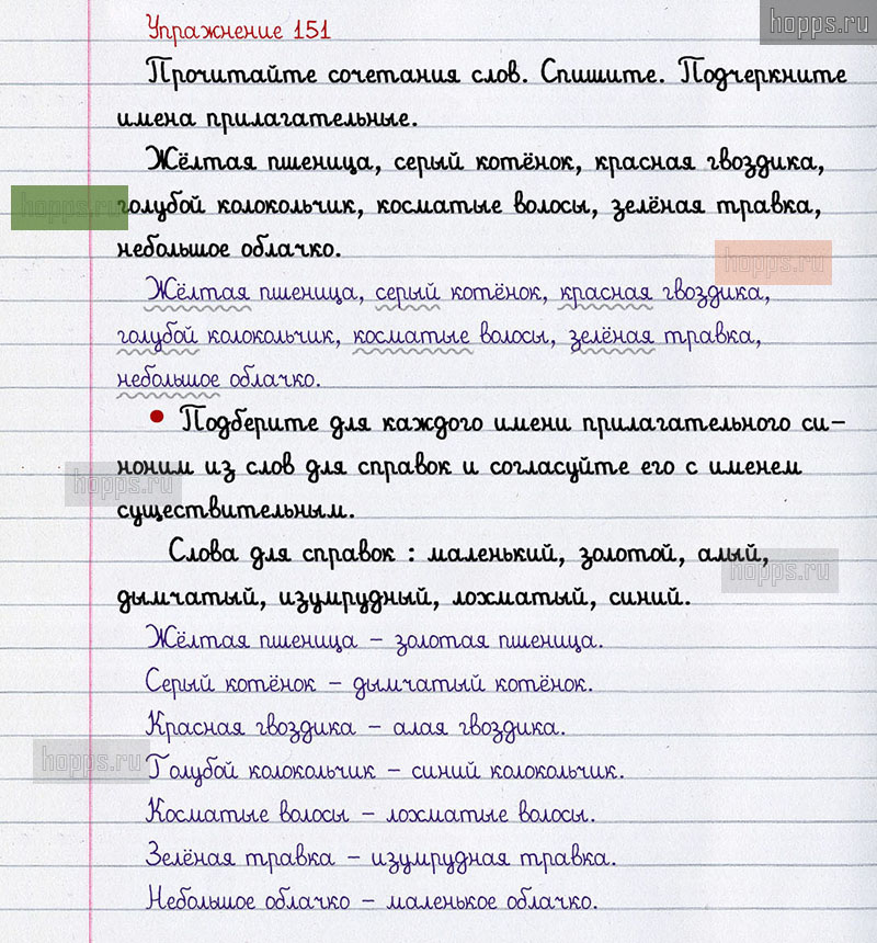 Подробные ответы к 151 упражнению 2 части учебника по русскому языку авторов В.П. Канакина, В.Г. Горецкий для учащихся 2 класса. Имя прилагательное.