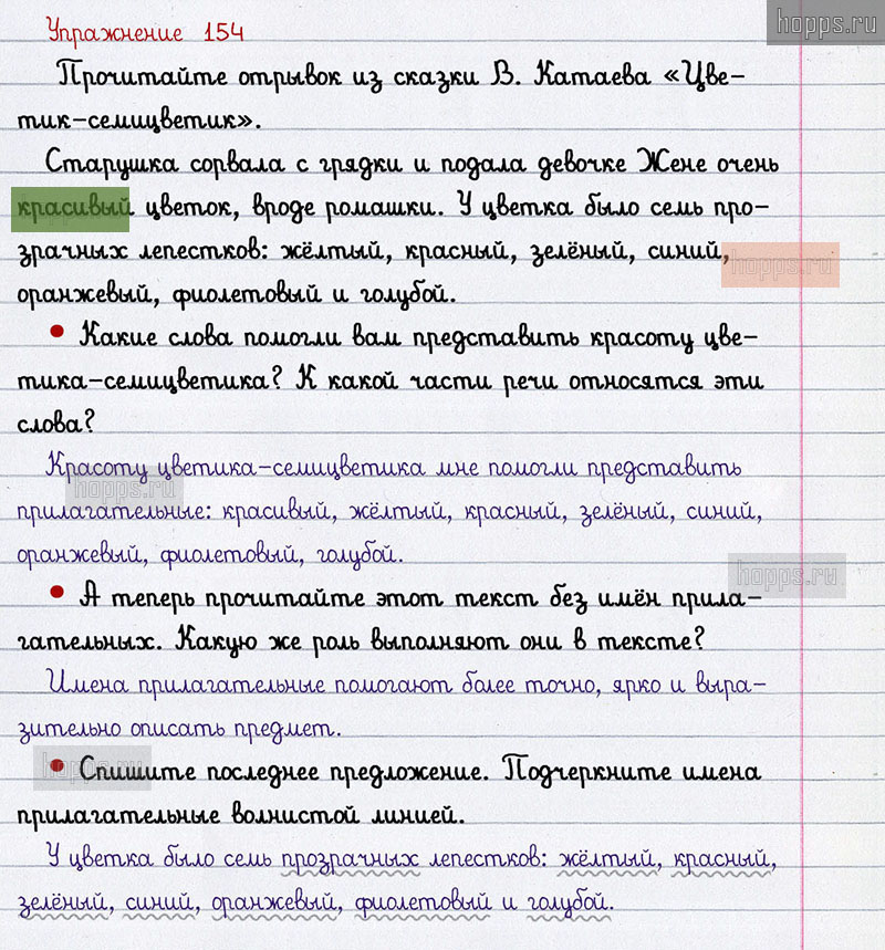 Подробные ответы к 154 упражнению 2 части учебника по русскому языку авторов В.П. Канакина, В.Г. Горецкий для учащихся 2 класса. Имя прилагательное.