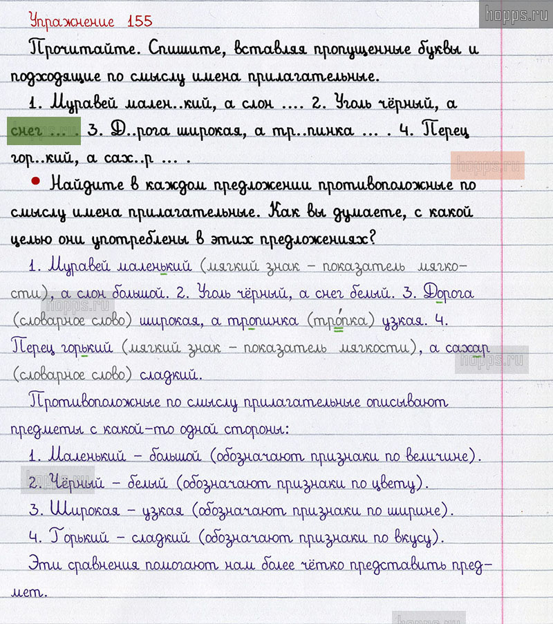Подробные ответы к 155 упражнению 2 части учебника по русскому языку авторов В.П. Канакина, В.Г. Горецкий для учащихся 2 класса. Имя прилагательное.