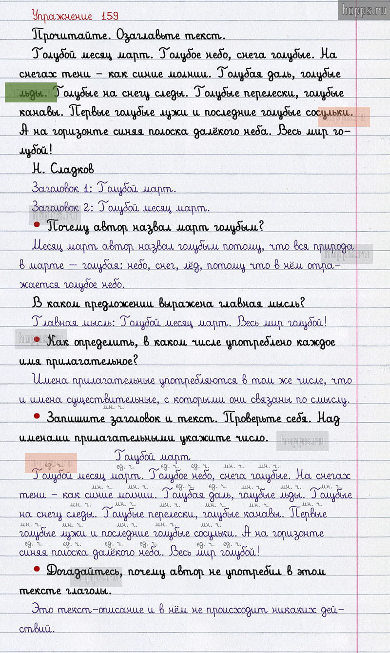 Подробные ответы к 159 упражнению 2 части учебника по русскому языку авторов В.П. Канакина, В.Г. Горецкий для учащихся 2 класса. Имя прилагательное.