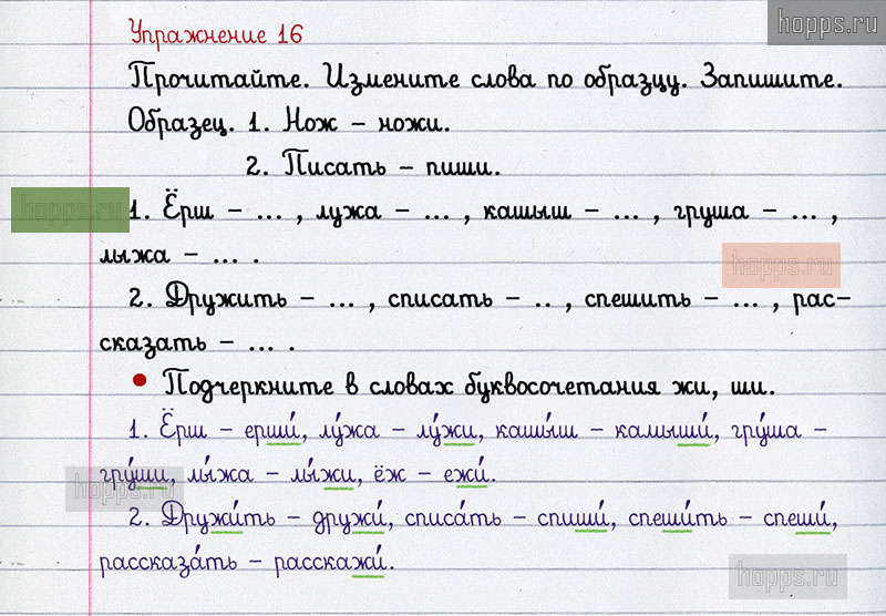 Подробные ответы к 16 упражнению 2 части учебника по русскому языку авторов В.П. Канакина, В.Г. Горецкий для учащихся 2 класса. Правописание буквосочетаний с шипящими звуками.