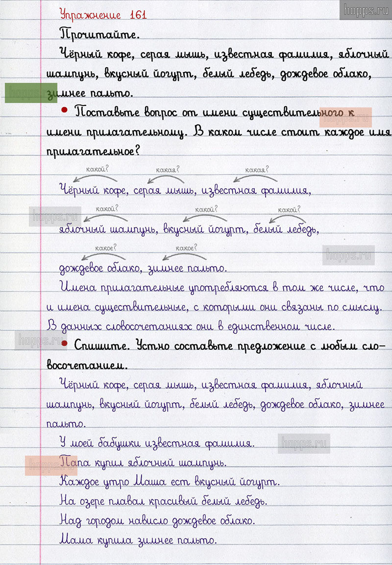 Подробные ответы к 161 упражнению 2 части учебника по русскому языку авторов В.П. Канакина, В.Г. Горецкий для учащихся 2 класса. Имя прилагательное.