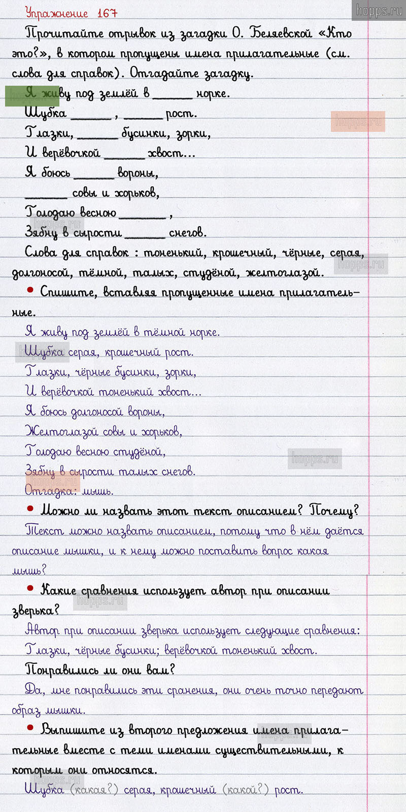 Подробные ответы к 167 упражнению 2 части учебника по русскому языку авторов В.П. Канакина, В.Г. Горецкий для учащихся 2 класса. Имя прилагательное.