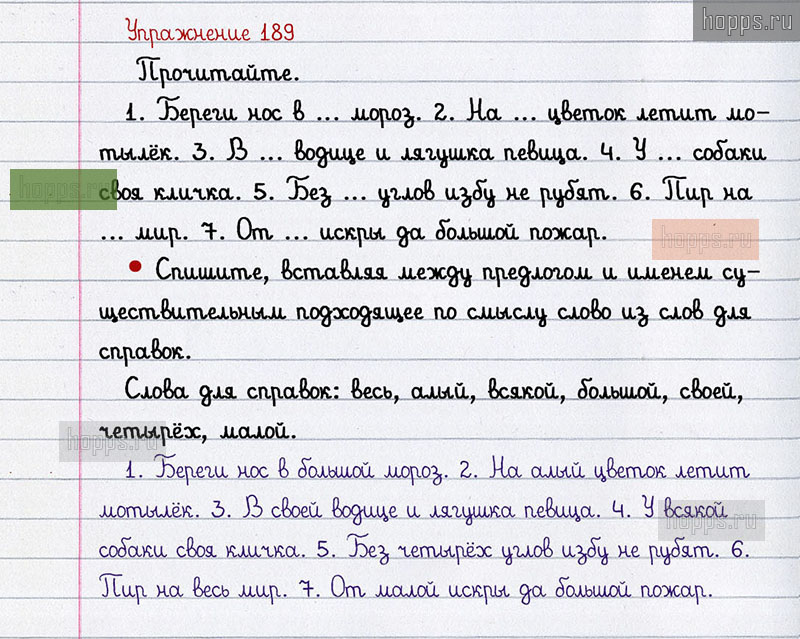 Подробные ответы к 189 упражнению 2 части учебника по русскому языку авторов В.П. Канакина, В.Г. Горецкий для учащихся 2 класса. Предлоги.