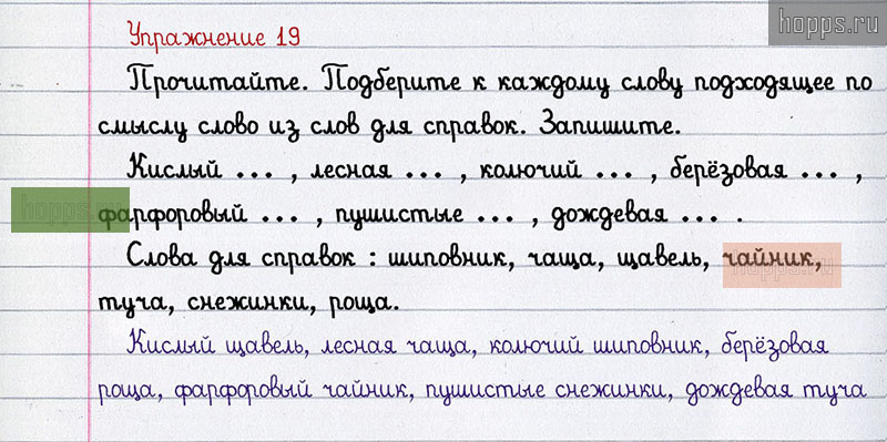 Подробные ответы к 19 упражнению 2 части учебника по русскому языку авторов В.П. Канакина, В.Г. Горецкий для учащихся 2 класса. Правописание буквосочетаний с шипящими звуками.