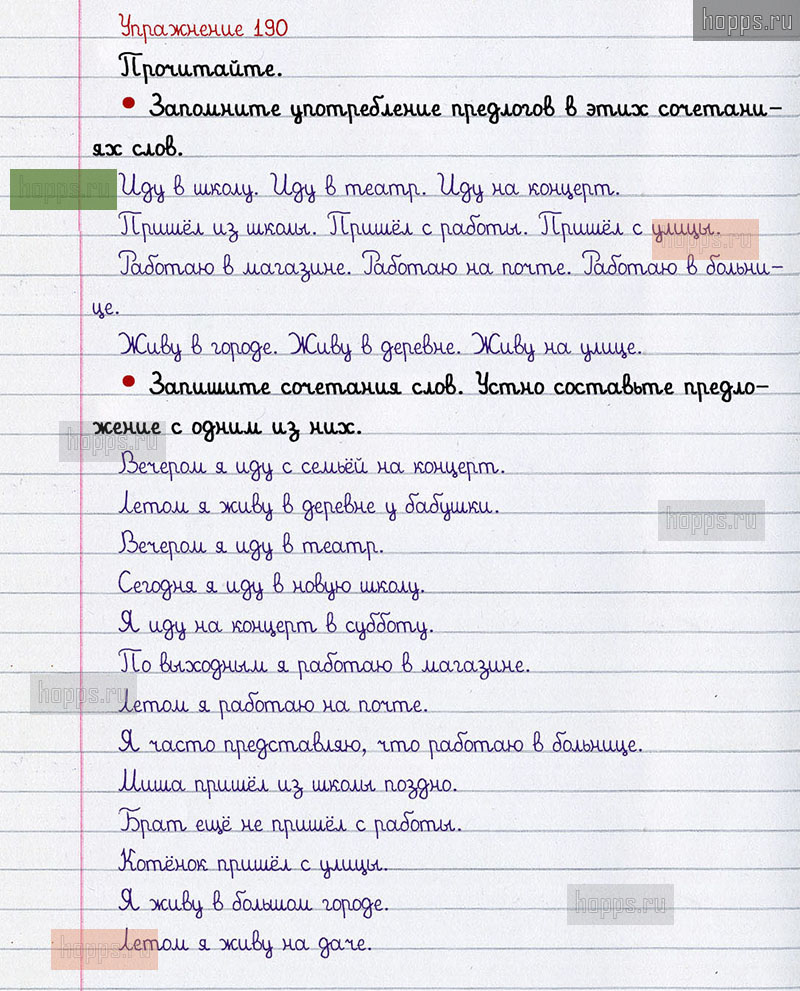 Подробные ответы к 190 упражнению 2 части учебника по русскому языку авторов В.П. Канакина, В.Г. Горецкий для учащихся 2 класса. Предлоги.